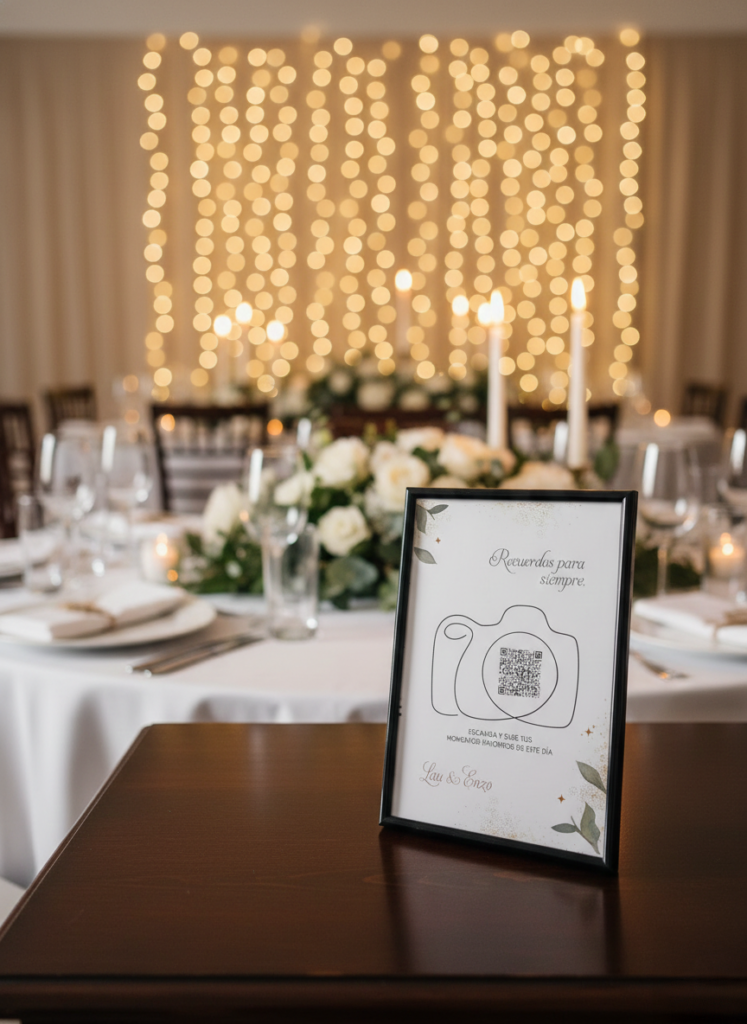 Centros de Mesa Interactivos con QR para subir fotos del evento