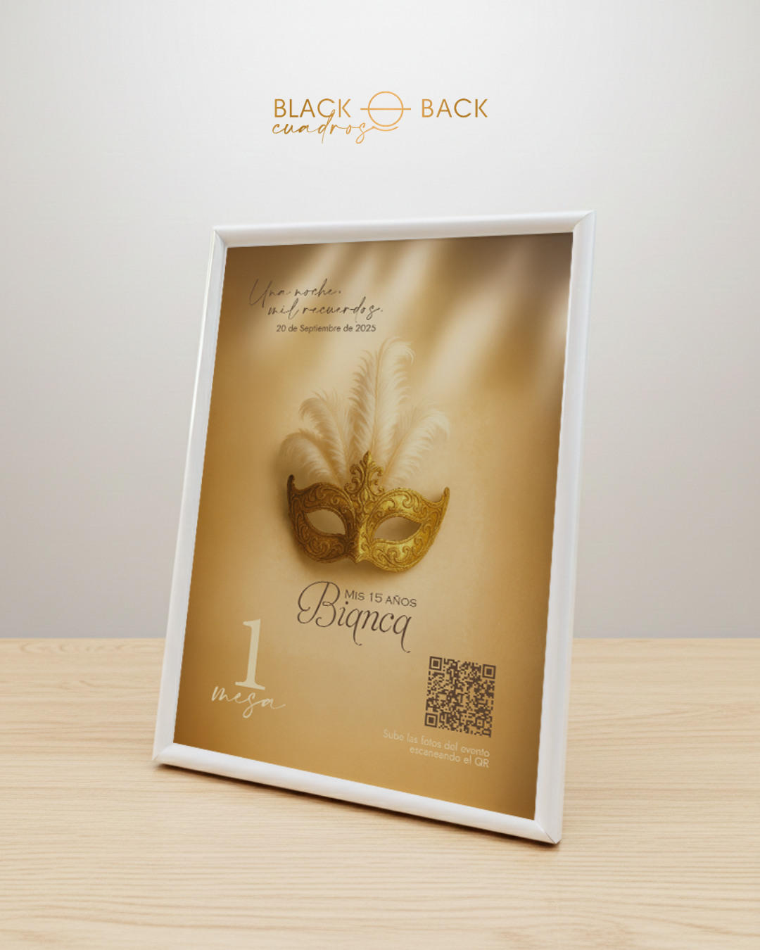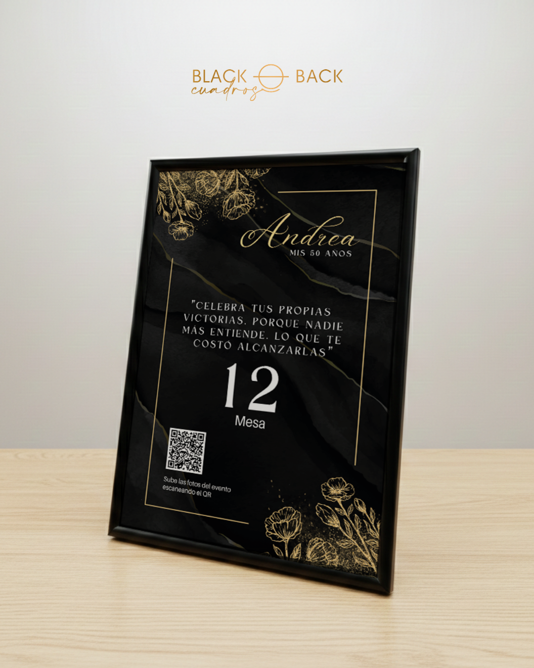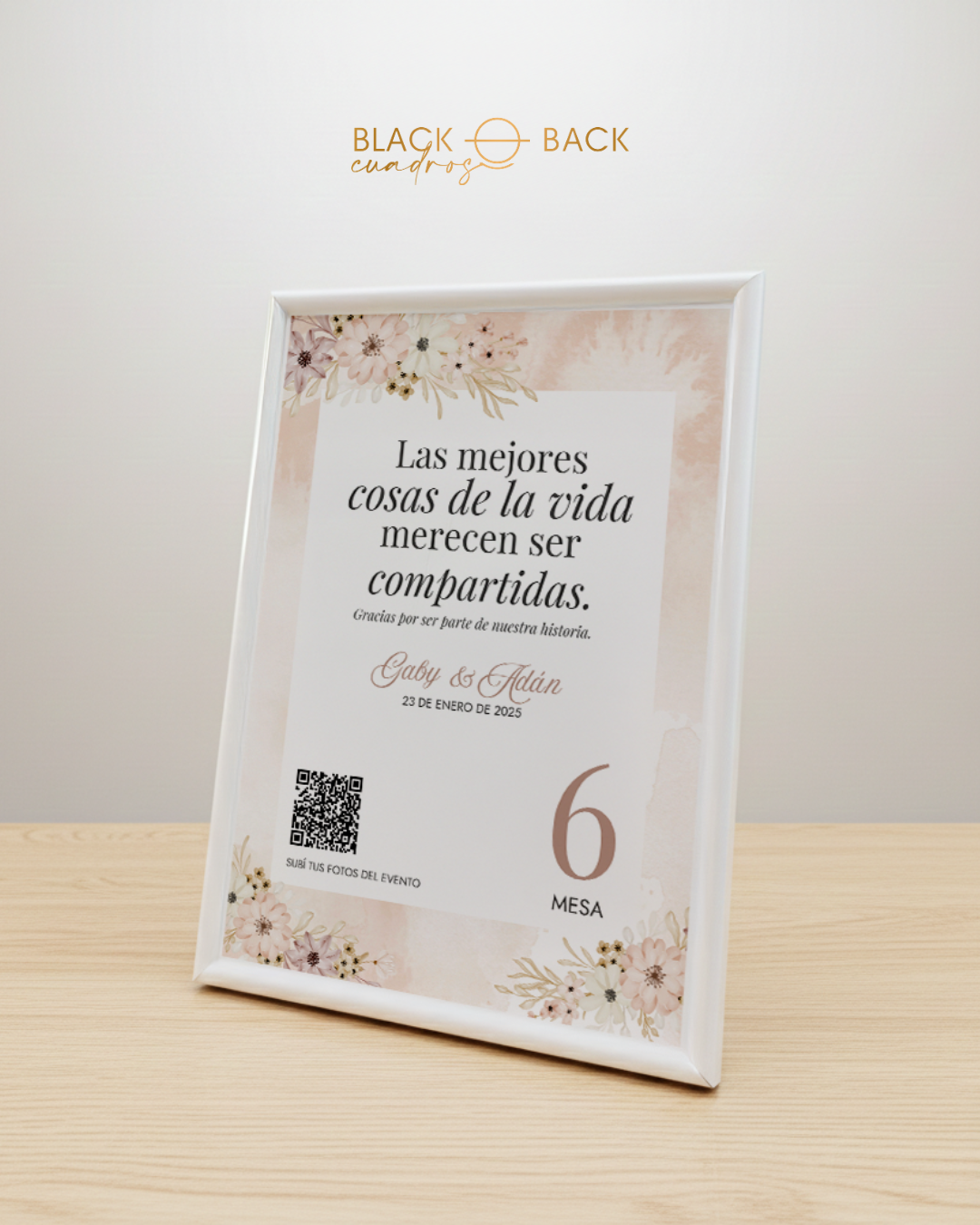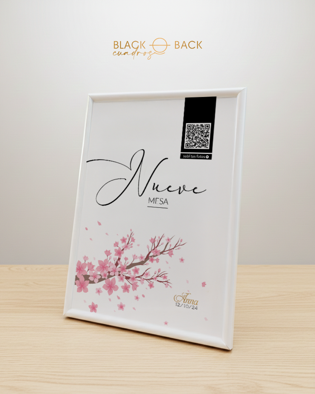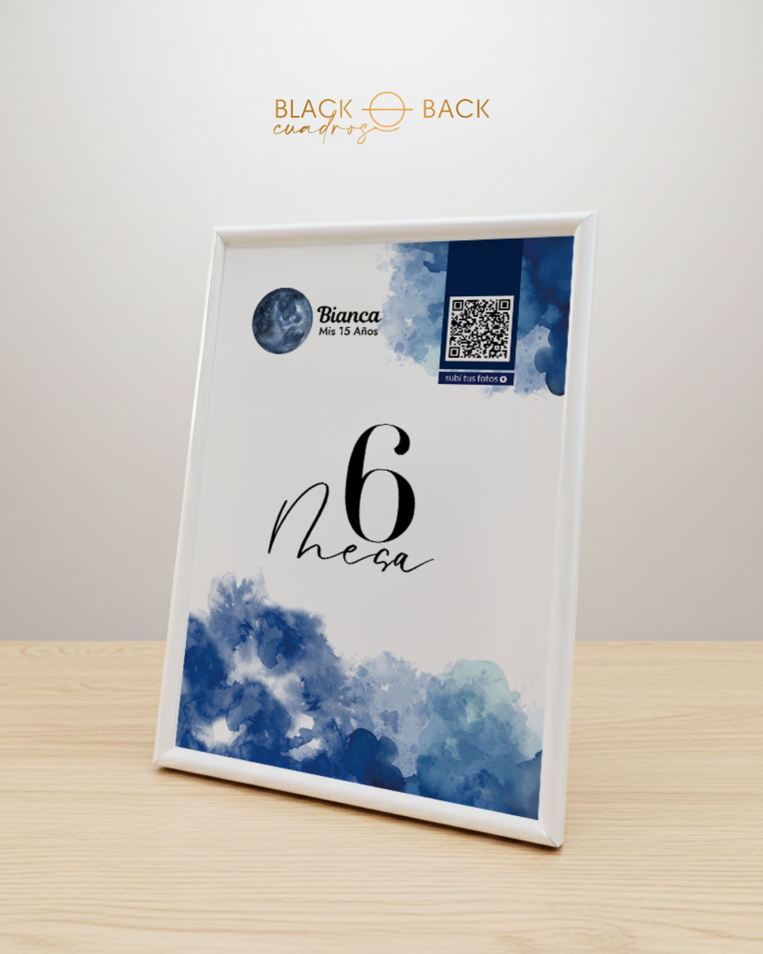 • Lámina impresa full color de 15×21 cm con diseño personalizado y número de mesa.