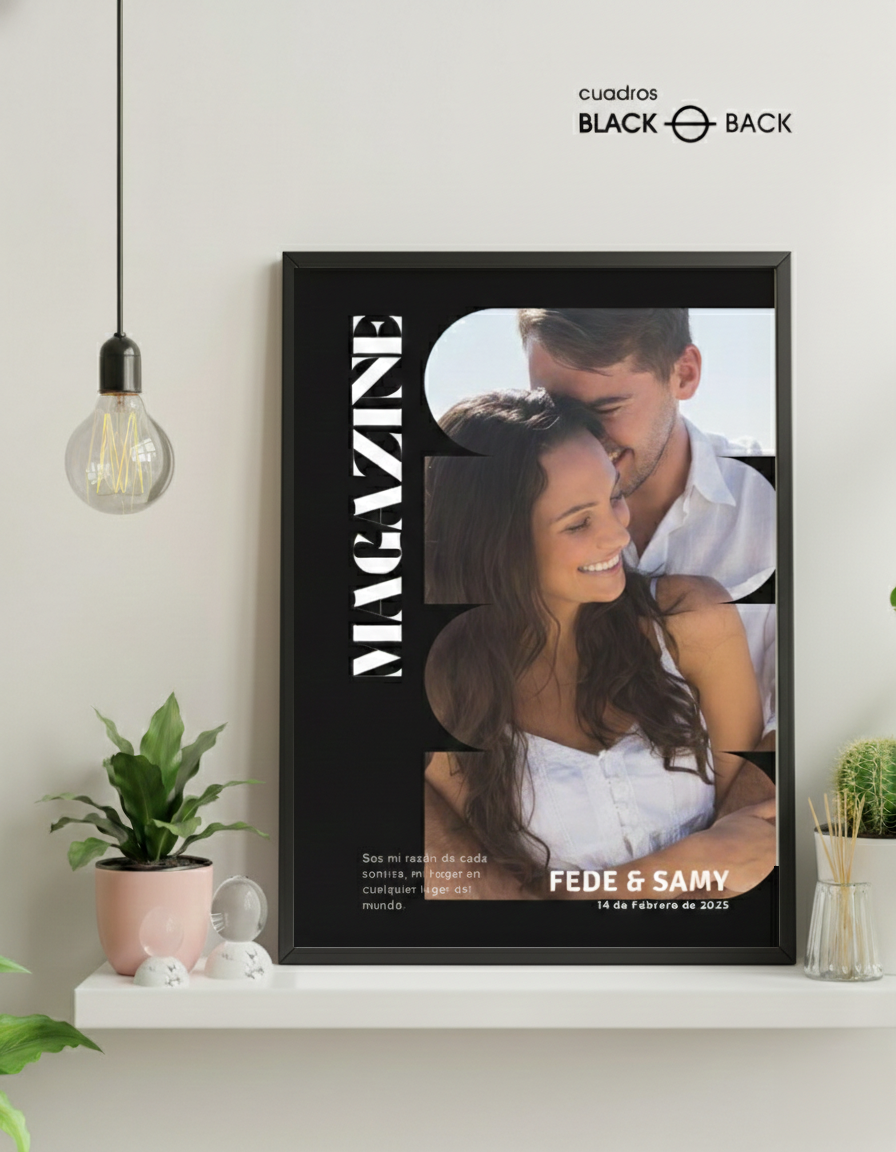 Personalizá tu cuadro con tu foto y detalles únicos. Agregá tus frases favoritas, sus nombres y fecha para hacerlo aún más especial.